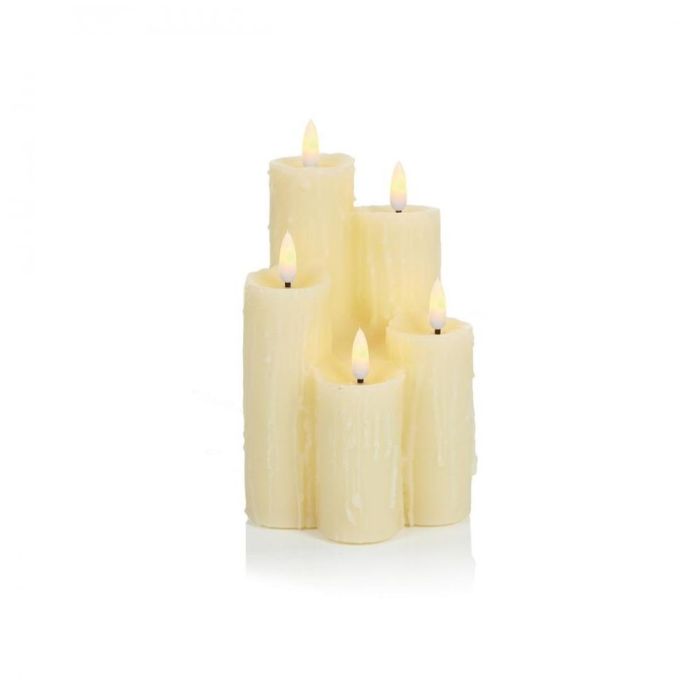 A really impressive candle display, the five Flickabright candles are all one moulded piece, so there's no need to rearrange, and none will fall out of order. Made from real wax, each candle has melted edges to add to the authenticity, giving an incredibly realistic effect. Simply pop in 2 x AA batteries and switch to either 'on', or 'timer'. The Timer function is excellent, the candles will light for six hours, then turn themselves off for eighteen hours, and then back on at the same time every day. The flames flicker with a warm white effect, completing the realistic feel of these decorative candles..
