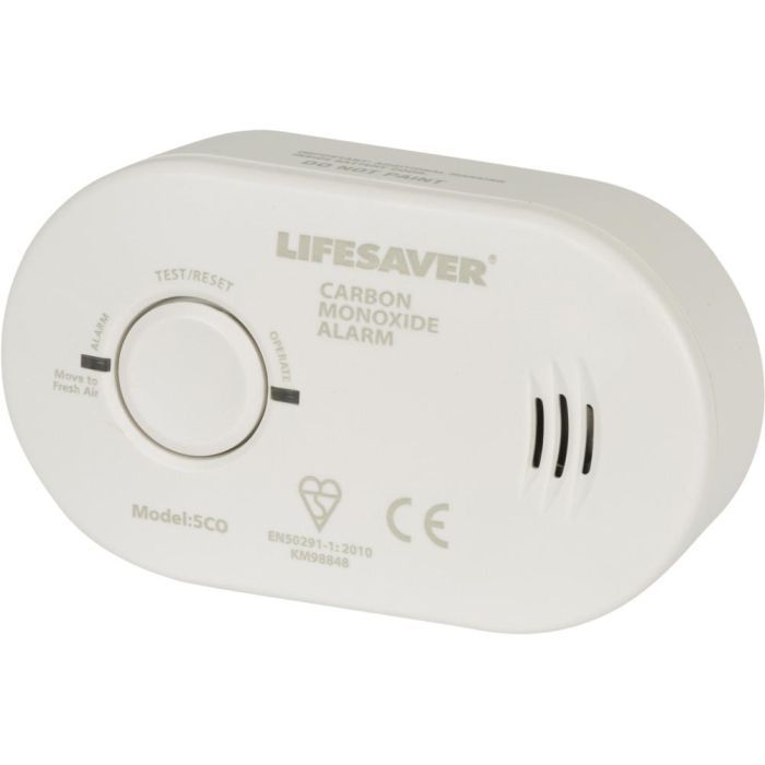 Battery-powered Kidde 5CO Carbon Monoxide Alarm with 85dB alert and dual LED indicators for detection and power status. Includes 3 x AA batteries and offers 7-year sensor life with end-of-life warning. Portable and easy to install.