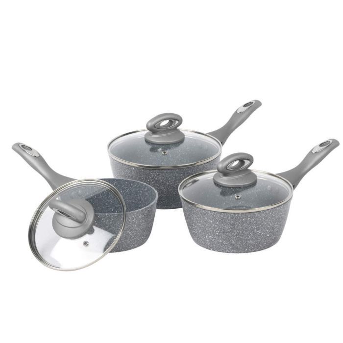 3pc Pot And Pan Cookware Set Grey Marblestone