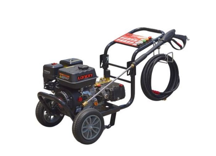 Engine: 360cc Loncin G390 engine with gear reduction drive Maximum Pressure: 3600 psi / 248 bar Operating Pressure: 3400 psi / 235 bar Flow Rate : 17 Litres per minute Wheels: 13 Inch Pneumatic Features: 5000psi spray gun, 5 quick-connect nozzles, 10-meter wire steel hose & aluminium turbo nozzle
