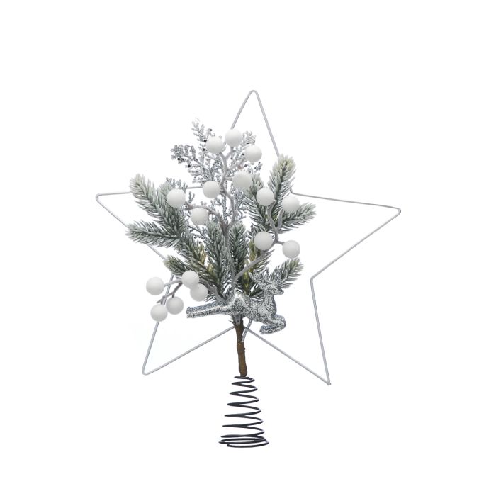 P051307 34CM WHITE STAR WITH FOILAGE TREE