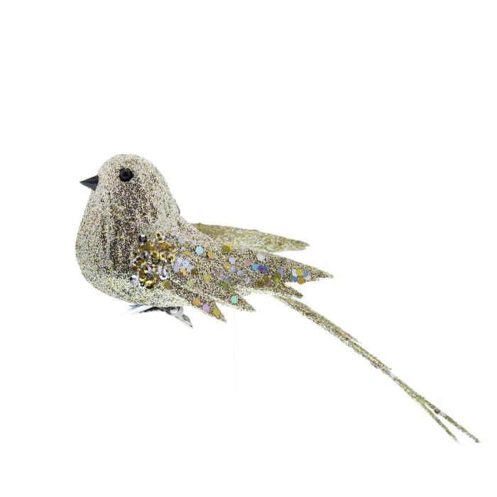 P056966 17CM CHAMPAGNE BIRD ON CLIP