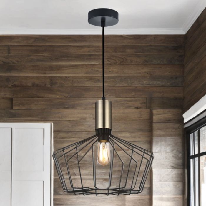 PF1314/BL+AB 1L BLACK & ANT BRASS CAGGED PEND