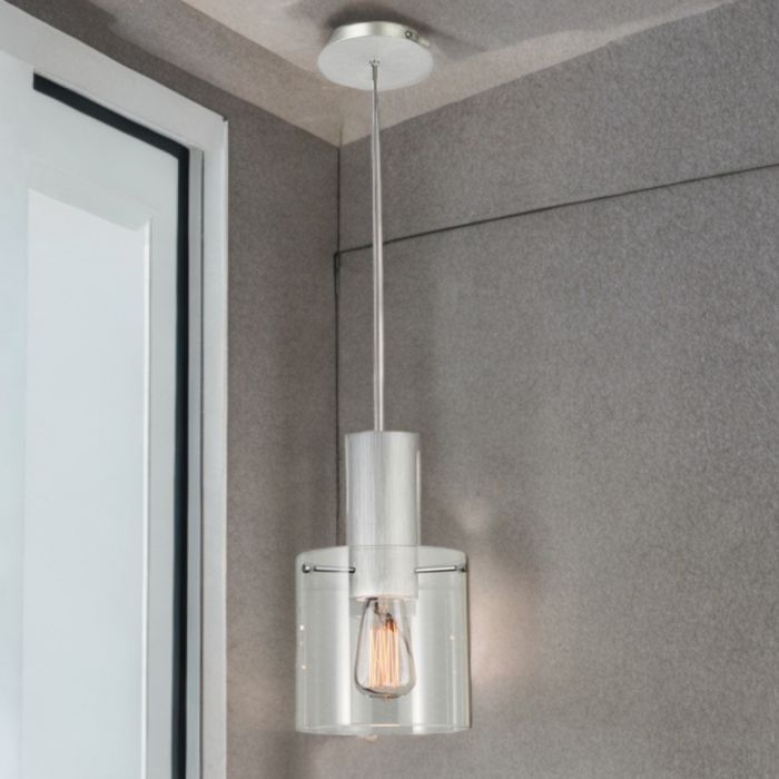 PF1607/1CLR 1L ALU/CLEAR GLASS PENDANT E27