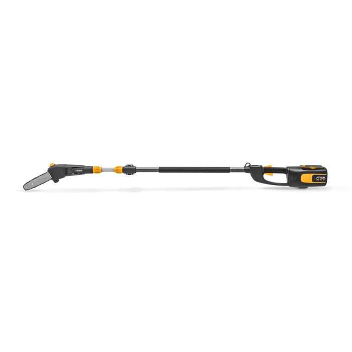 Battery powered pruner with a 65cm telescopic extension for a maximum reachable height of 4 metres.