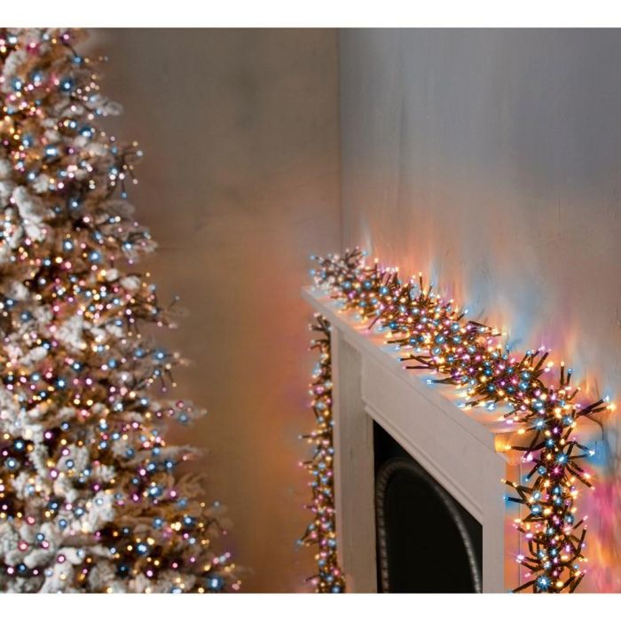 The Premier Decorations 2000 LED Multi-Action Clusterbrights - Rainbow create the visual effect of multiple strands of lights when wrapped around a tree or garland. They feature superbright energy efficient LEDs and eight programmable settings with timer function. The lights come with 10m of cable before the first bulb with a 1.3cm space between each bulb and a total lit length of 25m. They are suitable for use indoors and outdoors, and are also available in white or multi-coloured.