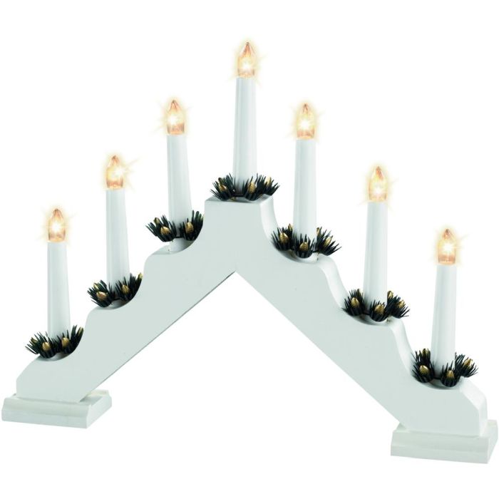 251258 7 LIGHT WOODEN CANDLEBRIDGE WHITE