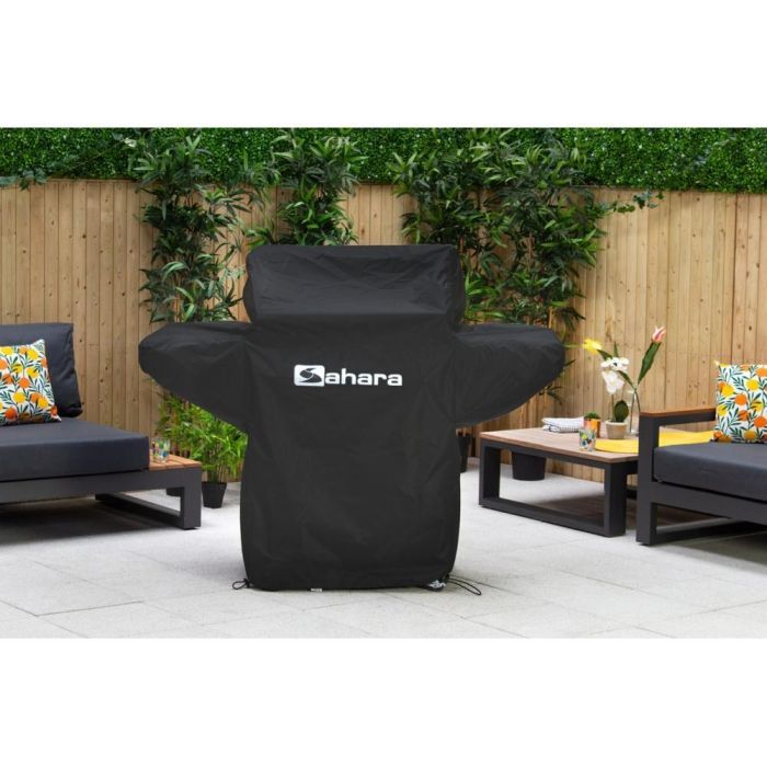 The Sahara 4 Burner BBQ Cover is specifically designed to fit the shape of your grill. It features a shielded diagonal zip for effortless covering and removal. Crafted from high-grade, fade-resistant material, it ensures durability. The cover is completely waterproof, and its breathable fabric prevents condensation. For added security, it includes a cord lock at the base and an adjustable strap to keep it snug and prevent water pooling. Always allow the BBQ to completely cool down before fitting the cover.
