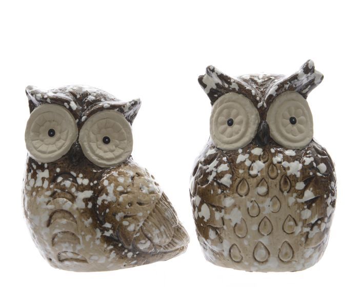 Porcelain Owl Marble Glaze Brown 1 of 2 Assorted