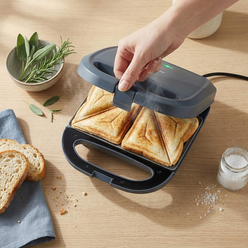Prepare quick and easy toasted sandwiches at home with this 2-slice sandwich maker, ideal for lunches, snacks or light meals, helping you cook evenly filled toasties with minimal effort and everyday convenience.
