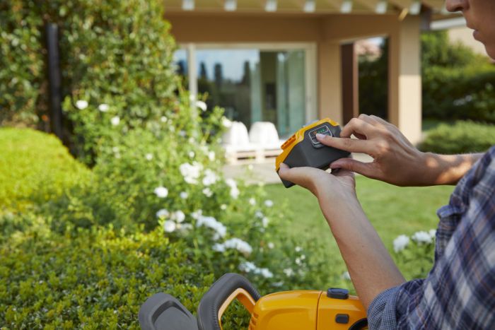 The HT 100e Kit (with 2Ah battery) is a cordless hedge trimmer that makes light work of tough gardening jobs.