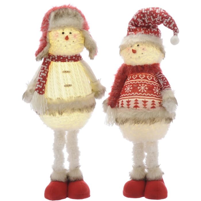The Festive Light Up Extendable Snowman 90Cm And 115Cm - 2 Assorted Will Add A Festive Touch To Your Home This Christmas. Illuminated With Warm White Leds, Each Snowman Wears Its Own Outfit With Incredible Detail - The 90Cm Snowman With A Red And White Scarf And Wearing A Winter Hat And The 115Cm Snowman With Red And White Jumper Wearing A Santa Hat. Each Snowman Has A Ball At The Bottom Which Stops It From Falling Over, He Just Simply Rocks.