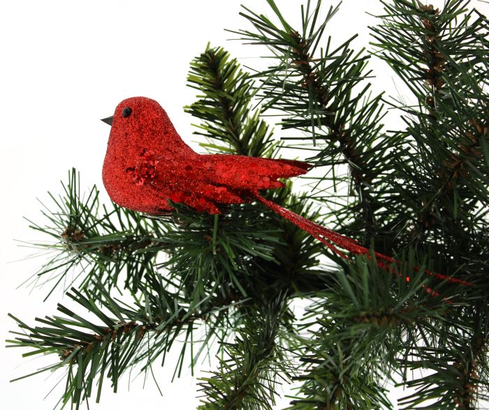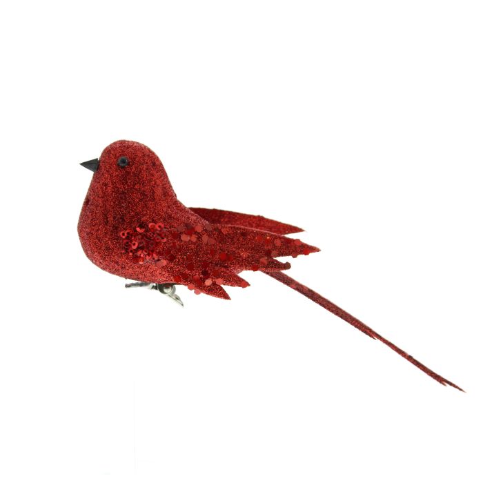 P056965 17CM RED GLITTER CLIP ON BIRD