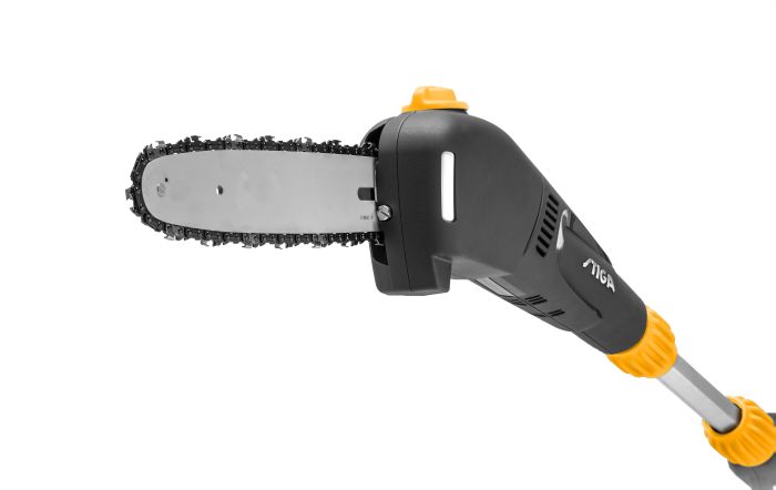 Battery powered pruner with a 65cm telescopic extension for a maximum reachable height of 4 metres.
