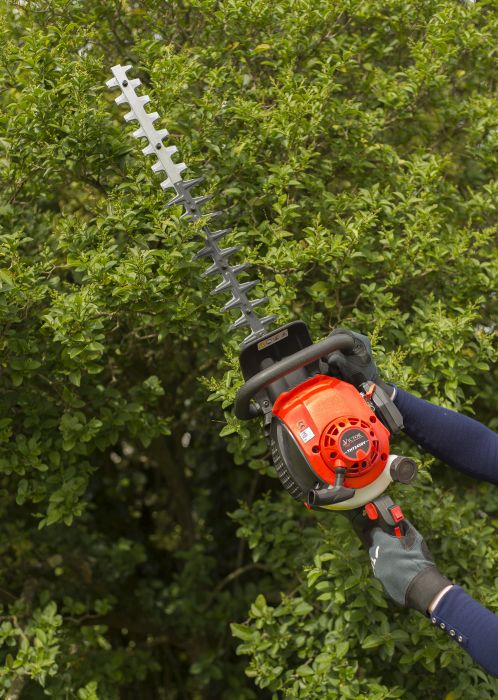 Double Sided Hedgetrimmer 2 Stroke Engine 25.4cc 24” Double Blade Rear Swivel Handle Weight: 5.5kg Euro2 Emissions Compliant