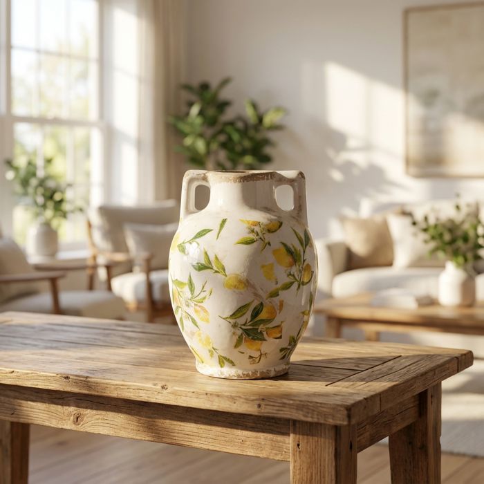 TL7330 LEMON TWO HANDLED VASE 22CM