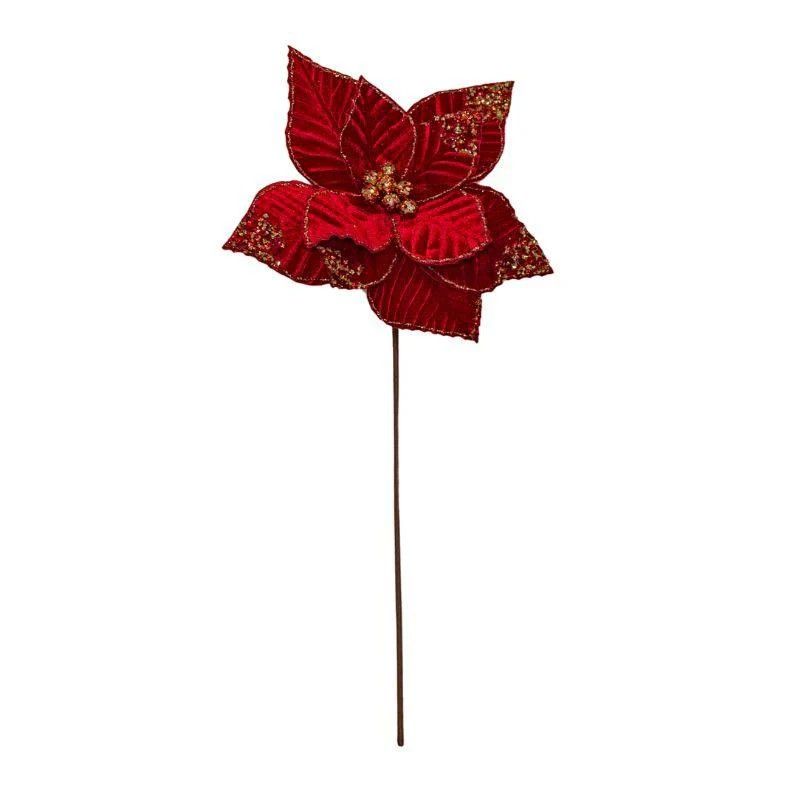 45cm Red And Gold Poinsettia Stem